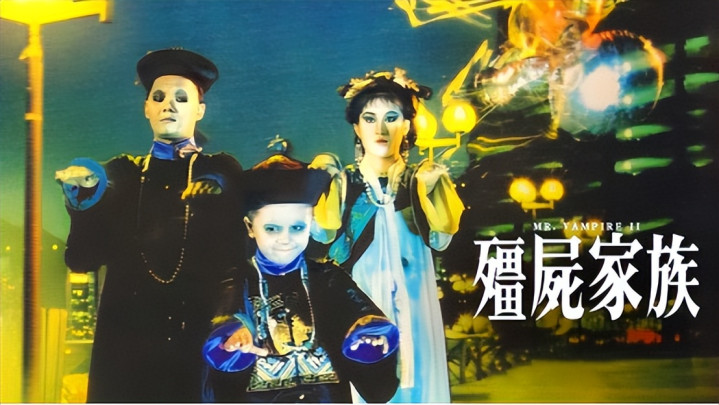 林正英饰演的九叔黄袍道冠、手持桃木剑,僵尸穿着清朝官服、一蹦一跳,既有让人头皮发麻的恐怖场景,又有让人捧腹大笑的喜剧桥段。